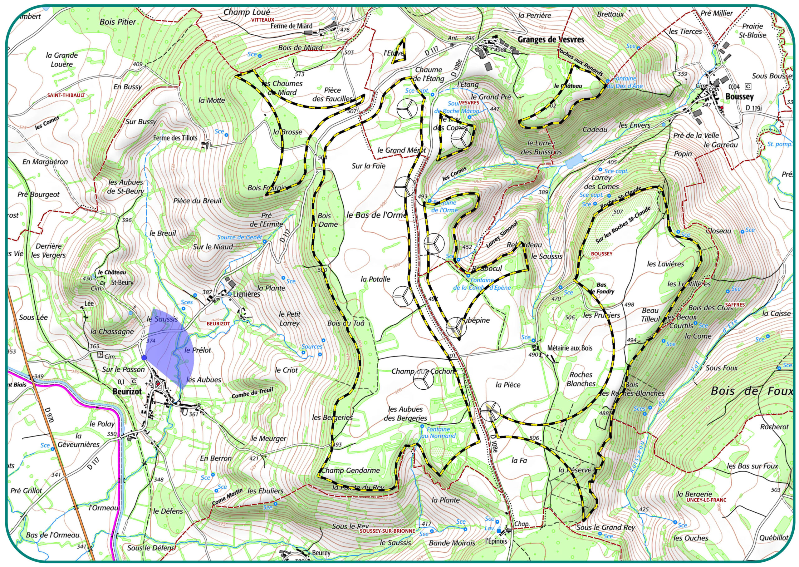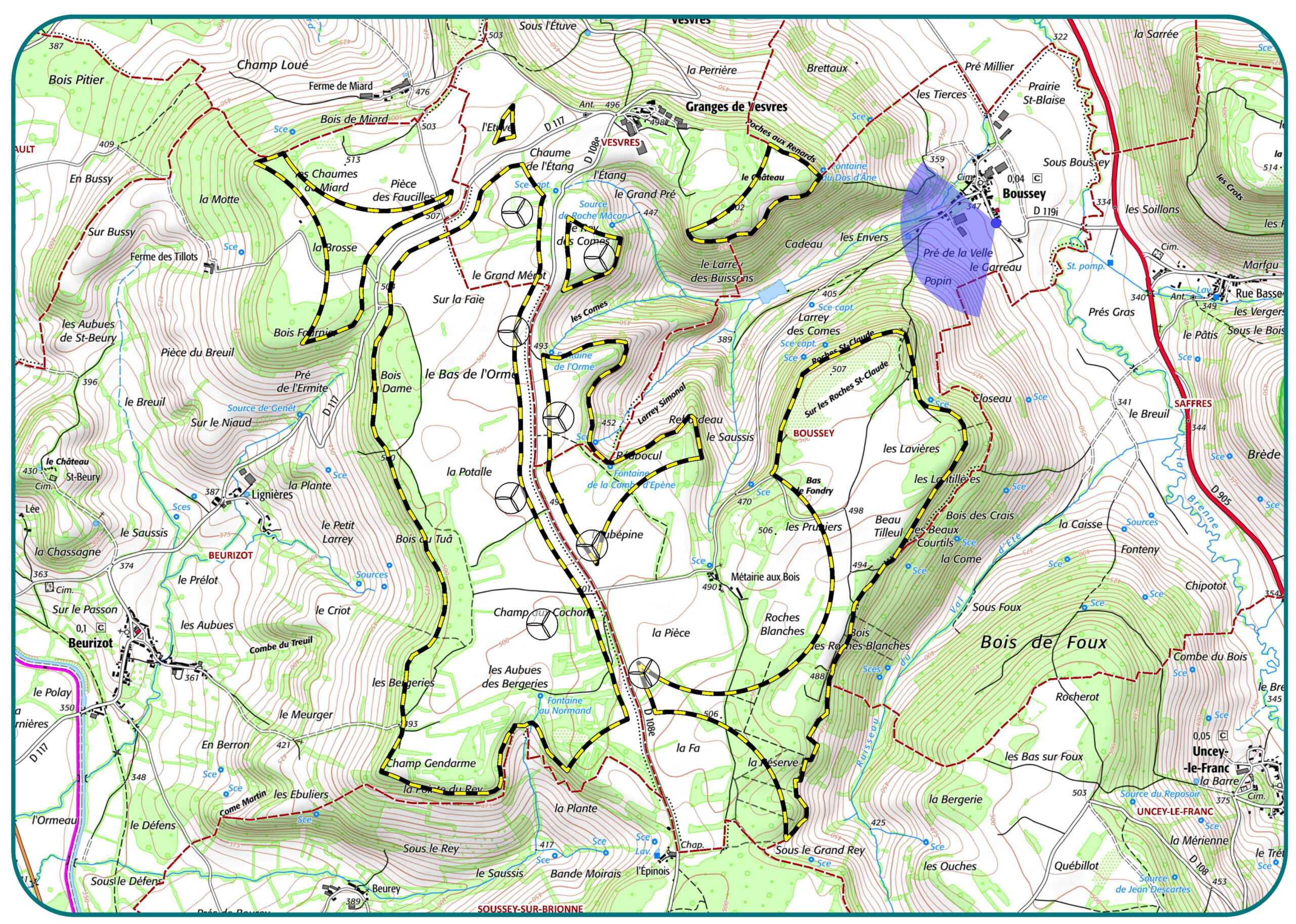 Le projet éolien de l’Aubépine est situé sur les communes de Beurizot, Boussey et Vesvres. Ce projet se situe sur le plateau situé entre ces trois communes.